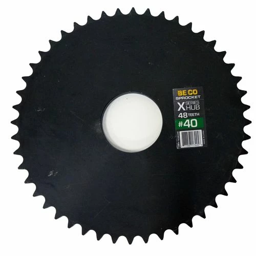 BE CO Sprocket for #40 Roller Chain X Series are weld-on components that are designed for a variety of farm, ranch and industrial applications. They are high quality, precision made sprockets. Available in 20 teeth (3-7/16 in. OD), 21 teeth (3-5/8 in. OD), 22 teeth (3-3/4 in. OD), 23 teeth (4 in. OD), 24 teeth (4-1/6 in. OD), 26 teeth (4-3/8 in. OD), 28 teeth (4-11/16 in. OD), 30 teeth (5-1/16 in. OD), 32 teeth (5-3/8 in. OD), 36 teeth (6 in. OD), 40 teeth (6-5/8 in. OD), 45 teeth (7-3/8 in. OD), 48 teeth (7-7/8 in. OD)
