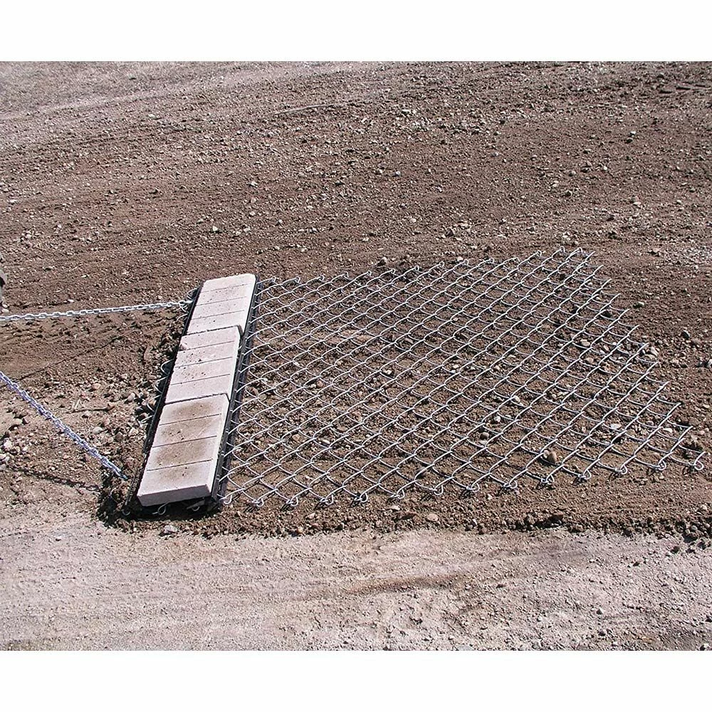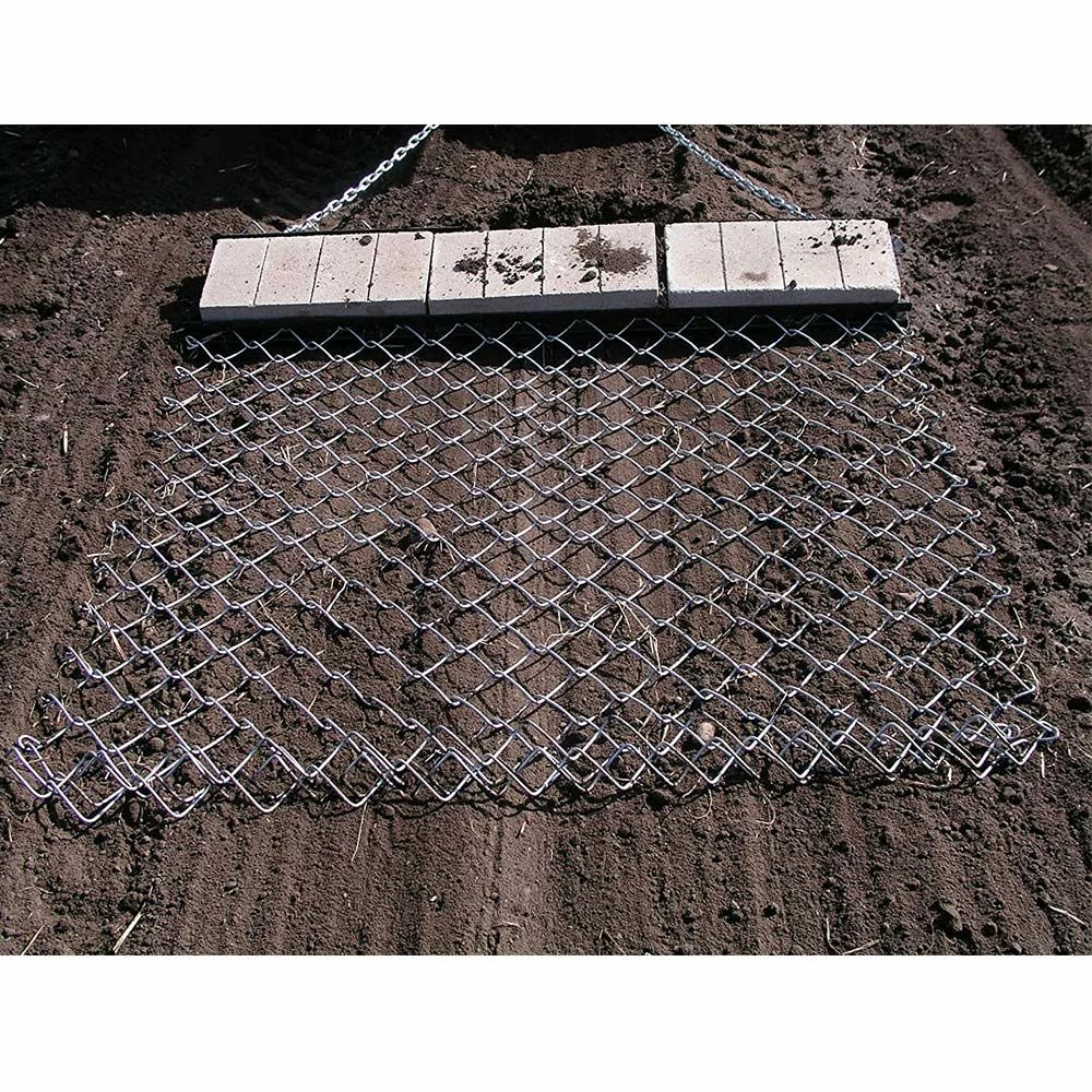 Field Tuff Drag Harrow is perfect for a variety of jobs. It is constructed of a chain-link style galvanized mesh. The universal chain-style hitch allows you to attach it to almost any ATV, UTV, or utility tractor or easy towing. A front tray holds 8 in. cement blocks for extra weight. The powder-coat finish and durable construction ensures that this product will resist rust and be long-lasting.