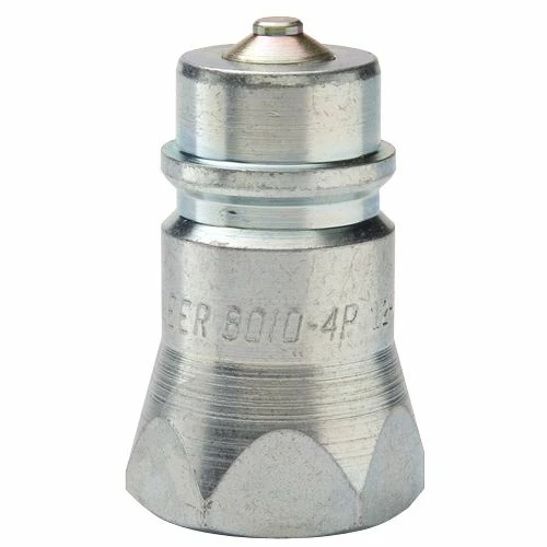 Pioneer ISO Male Tip (Poppet Valve) 1/2 In. NPTF has an induction hardened body to prevent Brinelling and prolong service life. The shielded valve eliminates flow checking. It meets ISO 5675 dimensional specifications.