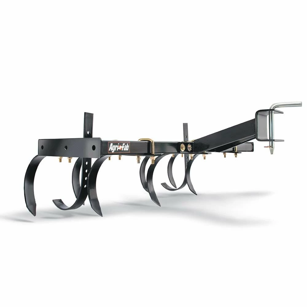 Agri Fab Row Crop Cultivator may be used for breaking up compacted soil, for working loose soil and for cultivating between crop rows. Has square steel tubing frame that can be used as a weight tray for added ground breaking penetration, up to 100 lbs. of block or other weight may be added. With its adjustable depth control skids and adjustable working width of 18 in. to 42 in. this unit has great versatility. Seven durable spring tangs ensures many years of quality use. Does require a sleeve hitch for operation.